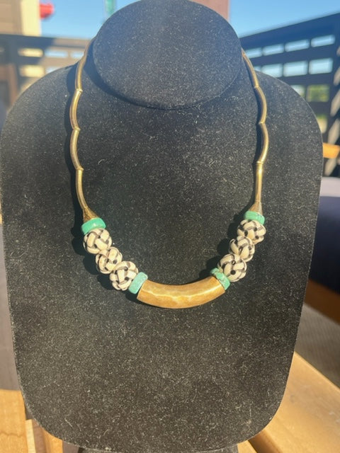 Carved bone, turquoise with silver- or gold plated ear hooks and findings (necklace sold separately)