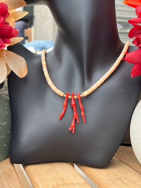 Heishi shell with branch coral and gold plated magnetic clasp