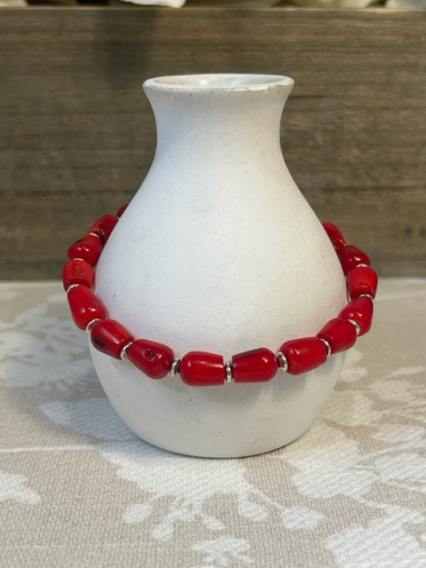 Natural Sardinian coral  with silver-plated accents on elastic cord