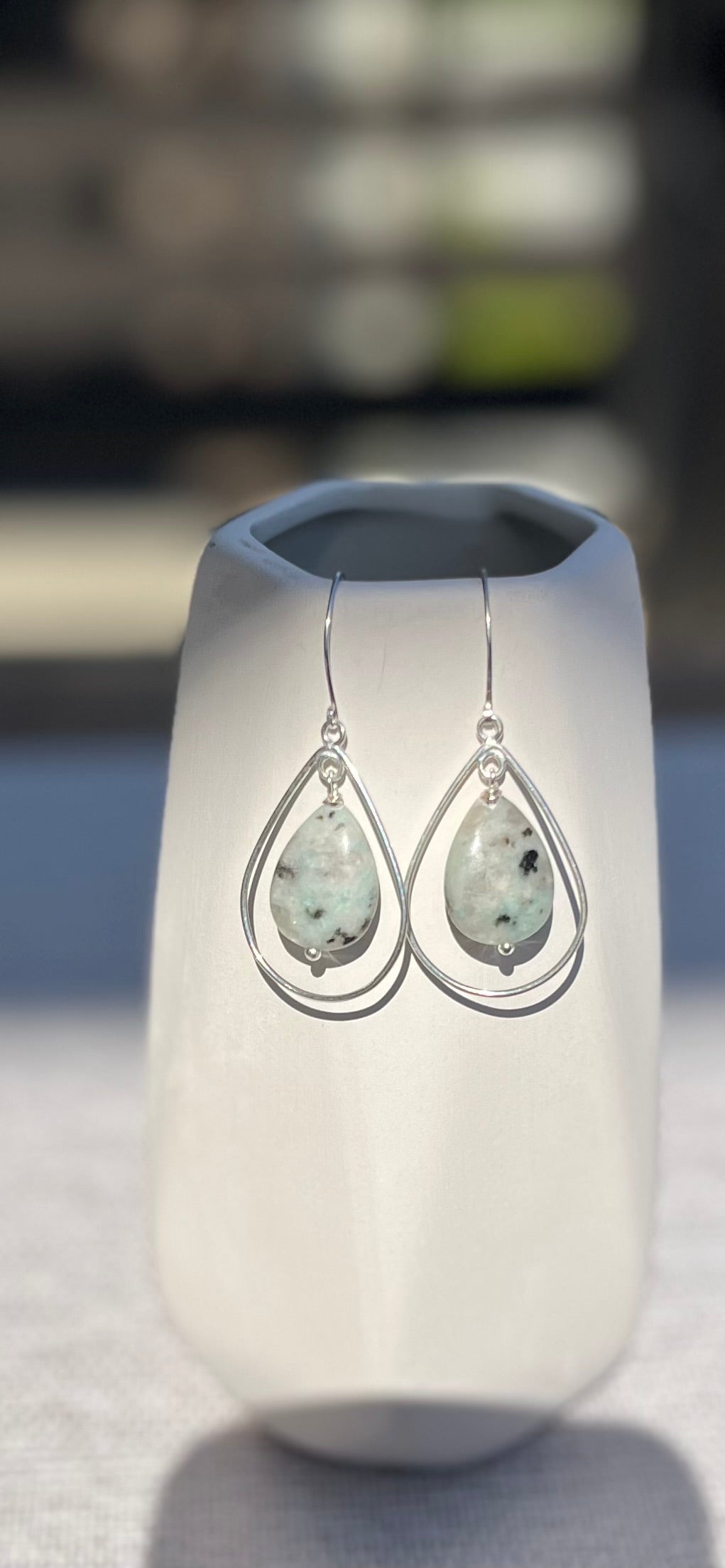 Sesame Jasper with sterling silver teardrop hoop and ear hooks