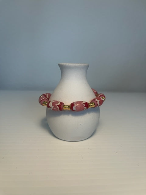 Java Chevron beads with silver- or gold- plated accents on elastic cord