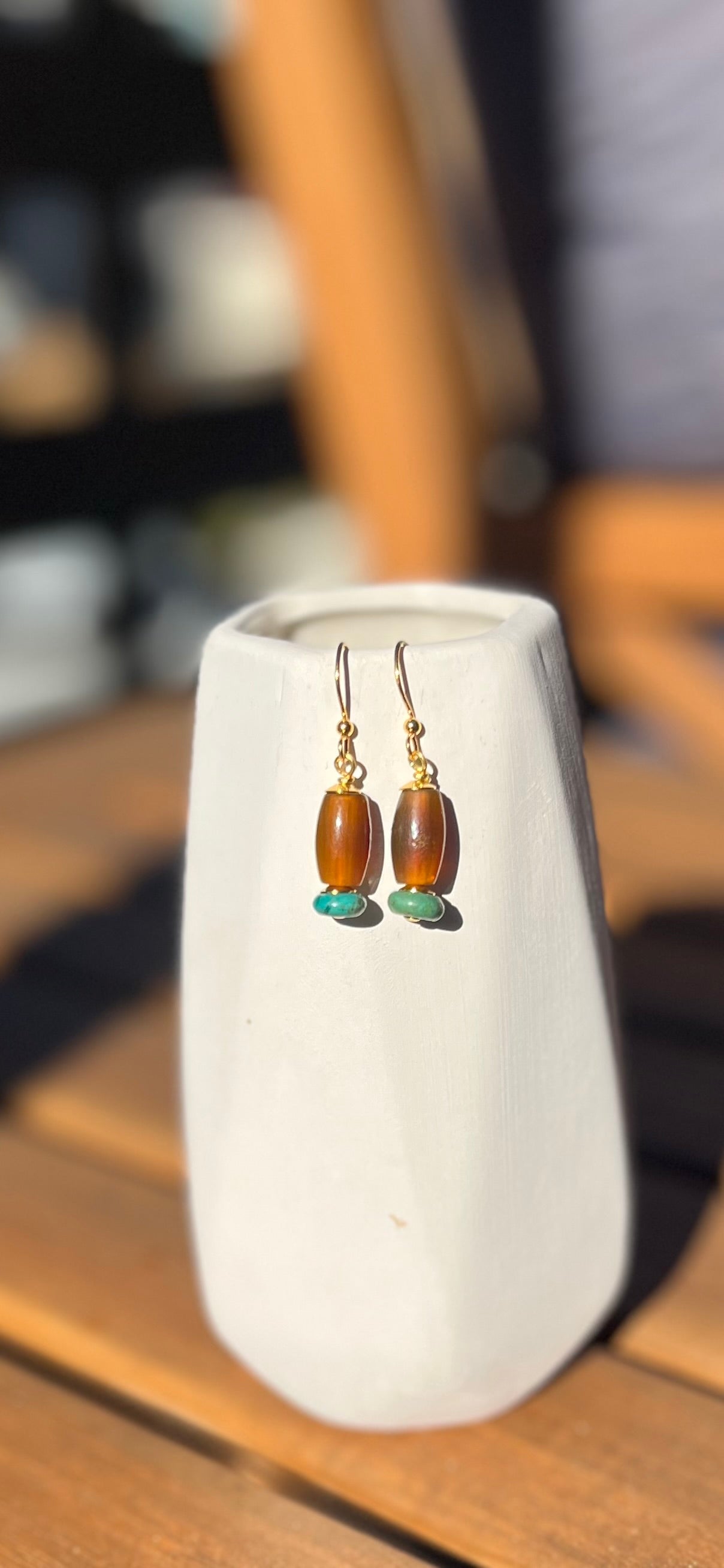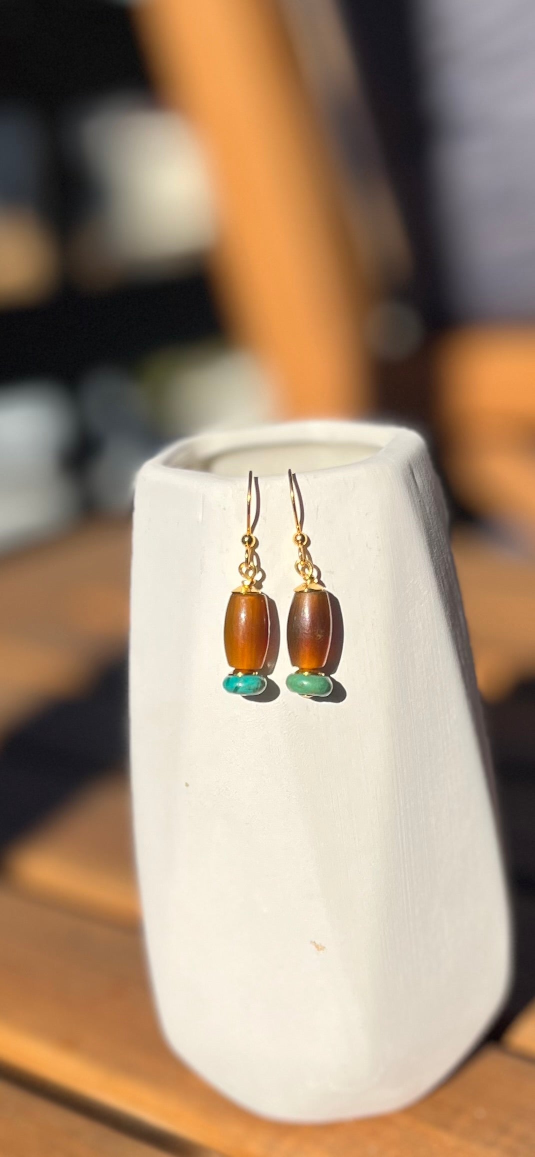 Carved horn with your choice of dalmatian jasper or turquoise and gold-plated ear hooks