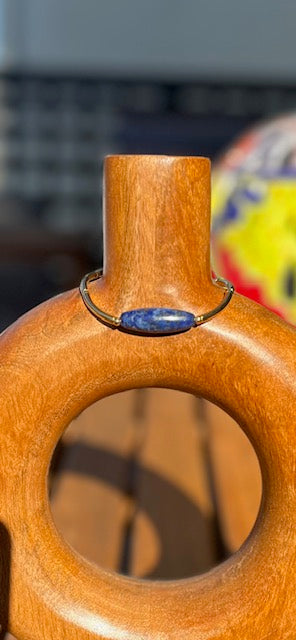 Eye catching lapis lazuli on your choice of gold- or silver-plated beads with elastic cord. Available in 7.5" (medium) or 8" (large)