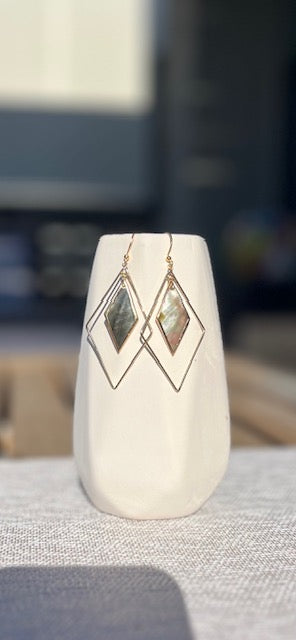 Black lip shell with gold (plated) diamond hoop and focal, on ear hooks