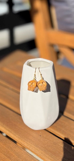 Halloween fun with carved bone (non-human) skulls in your choice of gold- or silver-plated ear hooks