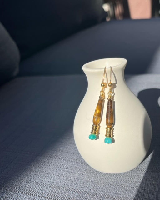 1.5" Tiger eye, turquoise with gold-plated earhooks